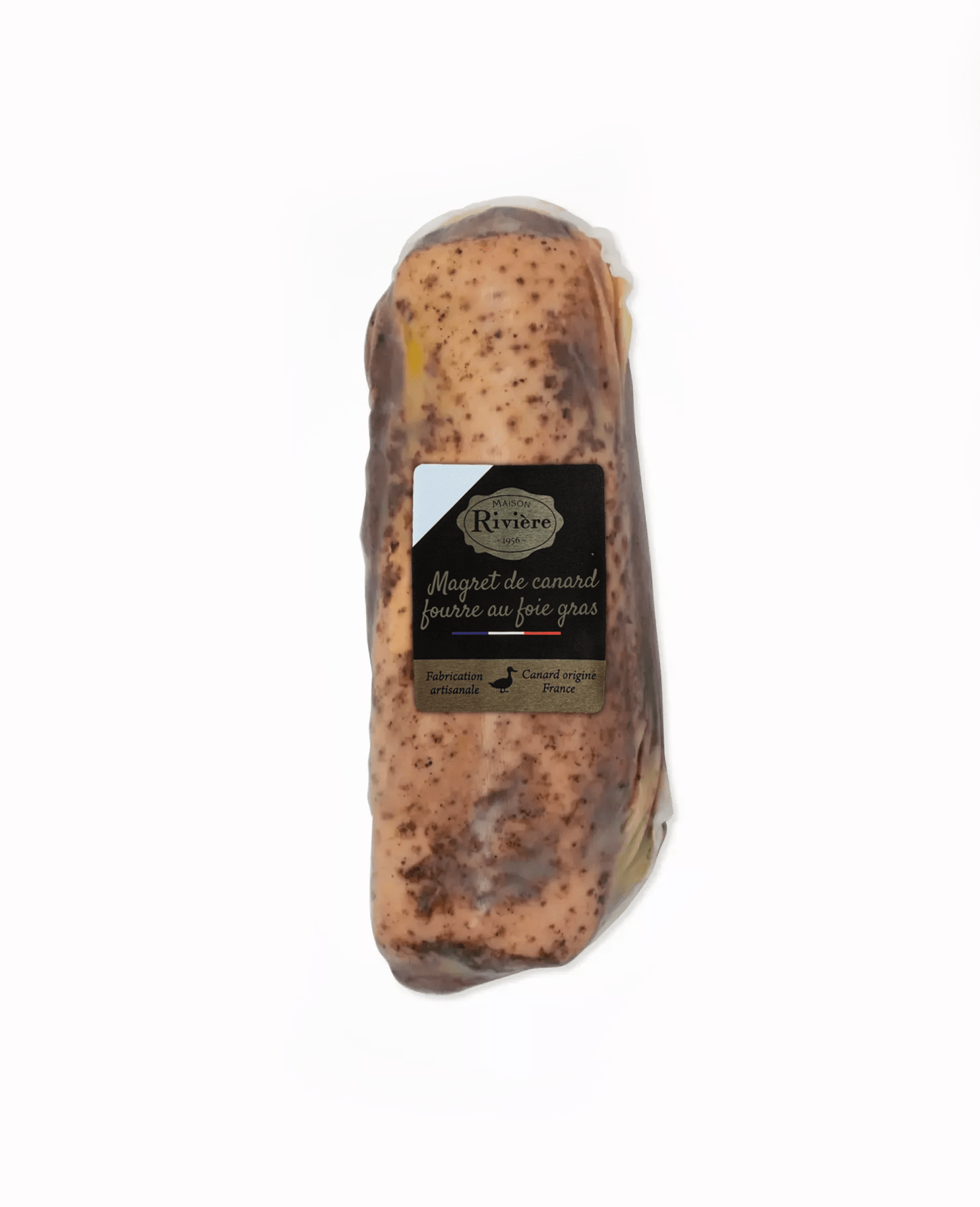 À travers ce produit gourmand, vous aurez l'occasion de savourer un magret généreux et délicat marié à du foie gras doux et fondant. La combinaison des deux offre aux papilles une expérience unique. Le bloc de foie gras utilisé ici est cuit sous vide. Le sel, les épices et un soupçon de sucre sont les principaux composants de ce savoureux magret au bloc de foie gras.