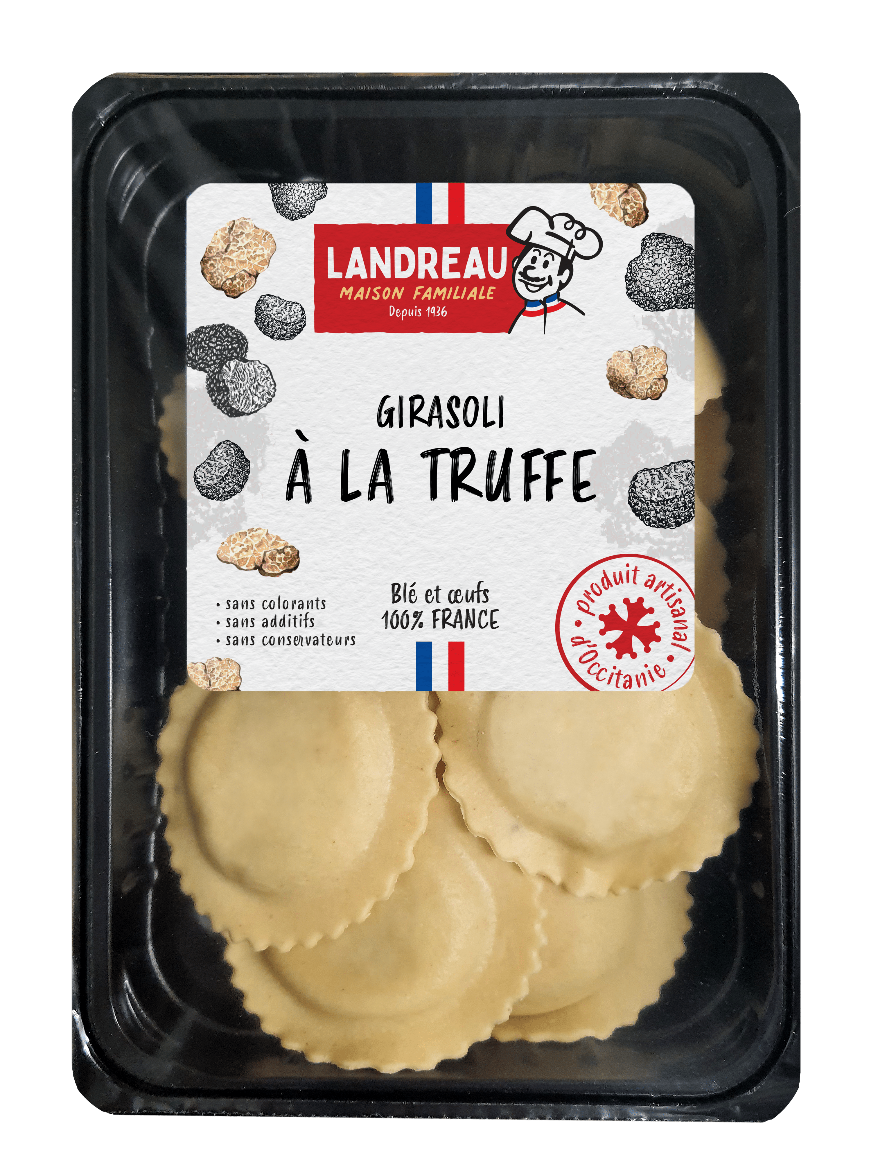 semoule de blé dur de qualité supérieure, œufs frais, 20 % de la semoule, eau, poudre, truffe, sel. Allergènes : gluten, œufs.